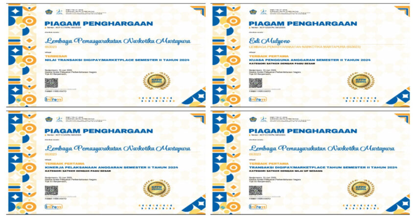 Sabet 4 Penghargaan Sekaligus, Lapas Narkotika Karang Intan Tunjukkan Kinerja Unggul dalam Pengelolaan Anggaran