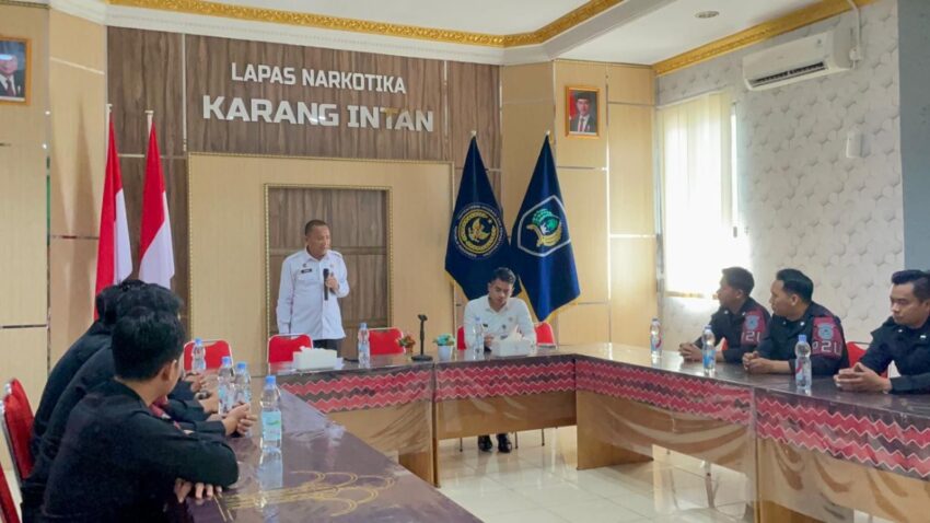 Karang Intan, INFO_PAS — Kepala Lembaga Pemasyarakatan (Lapas) Narkotika Kelas IIA Karang Intan, Yugo Indra Wicaksi, bersama Kepala Kesatuan Pengamanan Lapas (Ka. KPLP) Rizki Akbar, memberikan pengarahan kepada seluruh personel Pintu Utama (P2U), Senin (3/11). Pengarahan tersebut menitikberatkan pada penerapan aturan dasar dan Standar Operasional Prosedur (SOP) pengamanan secara disiplin, konsisten, dan penuh tanggung jawab….